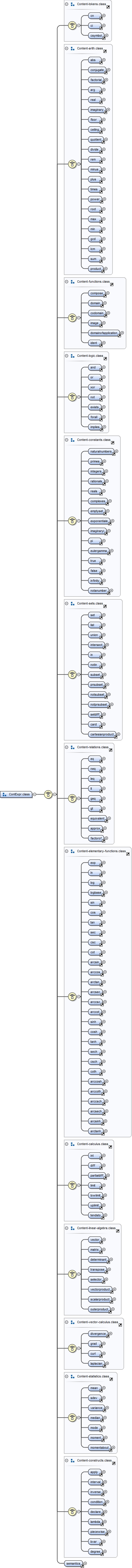 abs, and, apply, approx, arccos, arccosh, arccot, arccoth, arccsc, arccsch, arcsec, arcsech, arcsin, arcsinh, arctan, arctanh, arg, bvar, card, cartesianproduct, ceiling, ci, cn, codomain, complexes, compose, condition, conjugate, cos, cosh, cot, coth, csc, csch, csymbol, curl, declare, degree, determinant, diff, divergence, divide, domain, domainofapplication, emptyset, eq, equivalent, eulergamma, exists, exp, exponentiale, factorial, factorof, false, floor, forall, gcd, geq, grad, gt, ident, image, imaginary, imaginaryi, implies, in, infinity, int, integers, intersect, interval, inverse, lambda, laplacian, lcm, leq, limit, list, ln, log, logbase, lowlimit, lt, maction, maligngroup, malignmark, matrix, max, mean, median, menclose, merror, mfenced, mfrac, mi, min, minus, mmultiscripts, mn, mo, mode, moment, momentabout, mover, mpadded, mphantom, mroot, mrow, ms, mspace, msqrt, mstyle, msub, msubsup, msup, mtable, mtext, munder, munderover, naturalnumbers, neq, not, notanumber, notin, notprsubset, notsubset, or, outerproduct, partialdiff, pi, piecewise, plus, power, primes, product, prsubset, quotient, rationals, real, reals, rem, root, scalarproduct, sdev, sec, sech, selector, semantics, set, setdiff, sin, sinh, subset, sum, tan, tanh, tendsto, times, transpose, true, union, uplimit, variance, vector, vectorproduct, xor |
