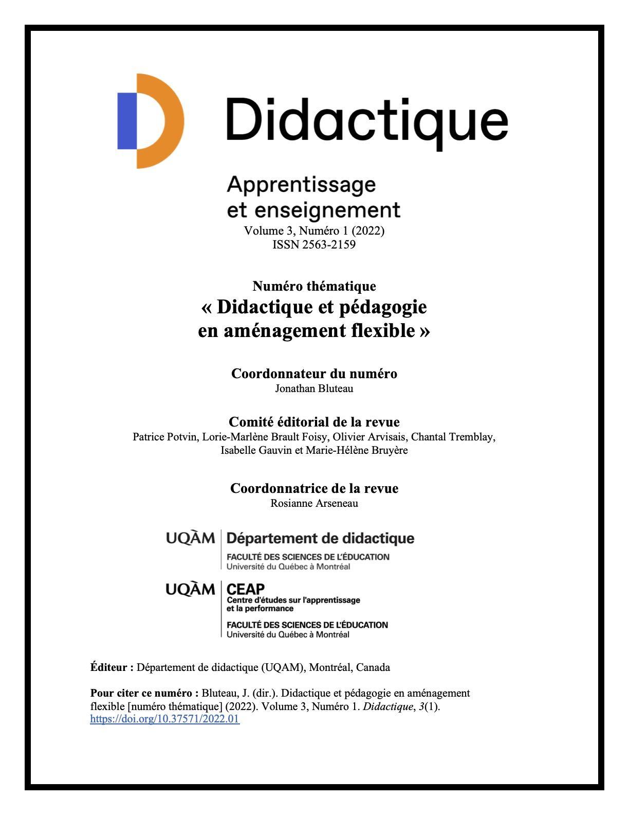 Volume 3, Number 1, 2022 Didactique et pédagogie en aménagement flexible Guest-edited by Jonathan Bluteau