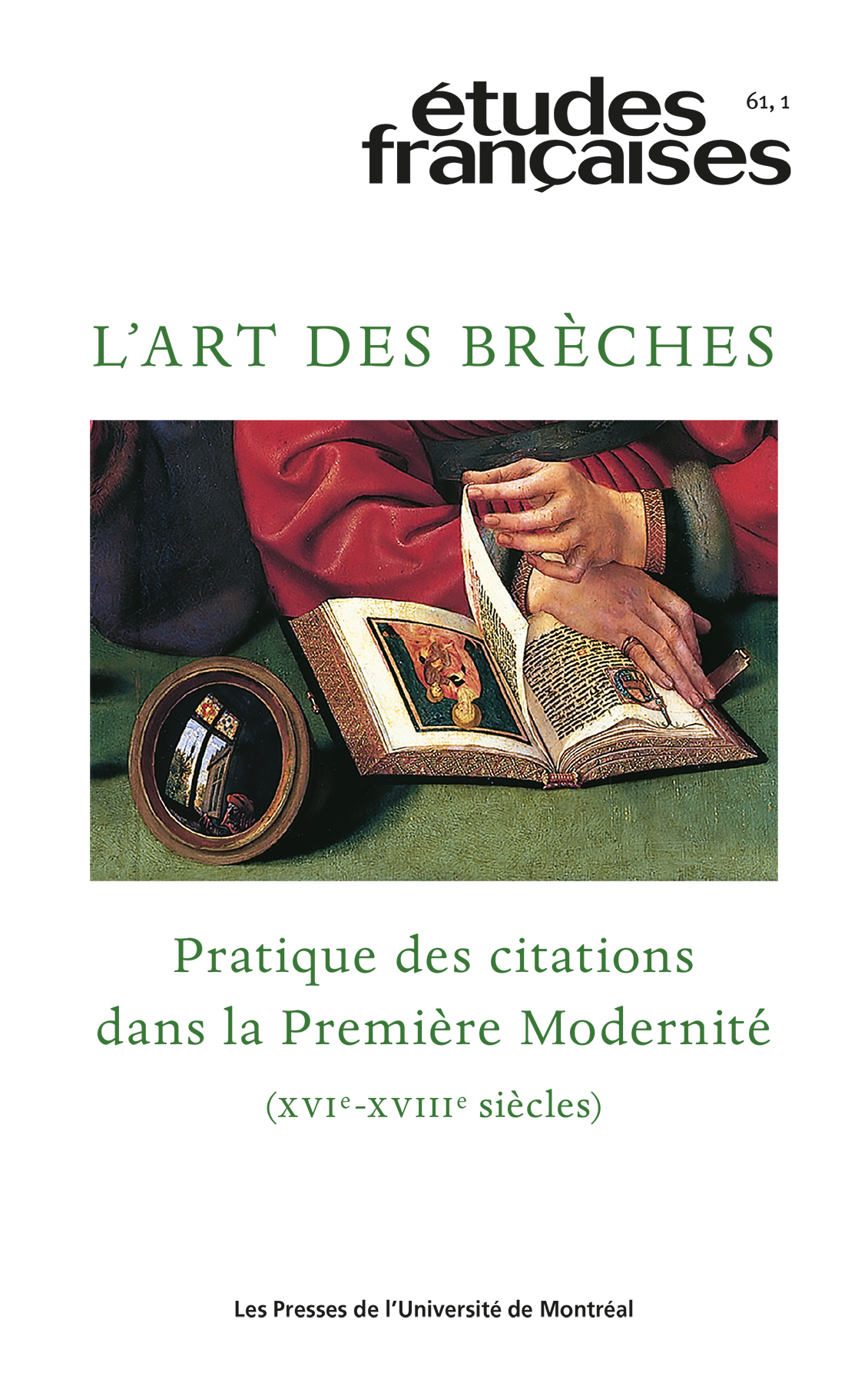 Si l’allusion devient le régime citationnel dominant dans la seconde moitié du xviie siècle, les rhétoriques ne renoncent pas du jour au lendemain à un usage plus explicite de « l’enchâssement ». Elles en programment un emploi prudent en même temps qu’elles réfléchissent sur ce qui fait du texte un texte : entre argumentativité et ornementalité, froideur et échauffement, lissage et bigarrure, la citation peut trouver un juste milieu sans renoncer à ses particularismes, comme le montrent des exemples empruntés à Senault, Voiture, Bossuet, Segrais ou Sévigné.