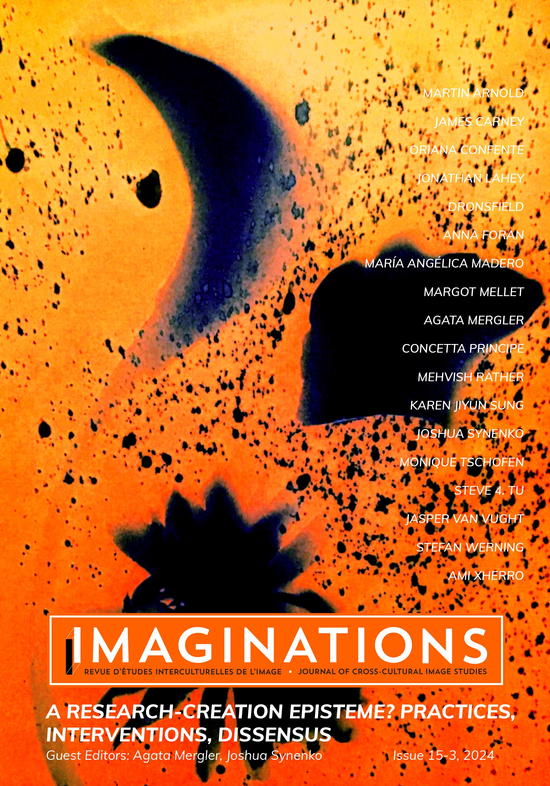 This special issue of Imaginations: Journal of Cross-Cultural Image Studies delves into some of the persistent questions surrounding creative practices in knowledge communities, and probes the boundaries of a creative research orientation or “episteme.” Considering a multitude of artistic practices, including archival projects, creative writing, communications, documentary film, film essay, mapping and locative projects, sound art, theatre and performance, transmedial storytelling, the issue explores how reconfiguring traditional outputs and knowledge dissemination can complement or displace the power invested in knowledge producing institutions like universities.