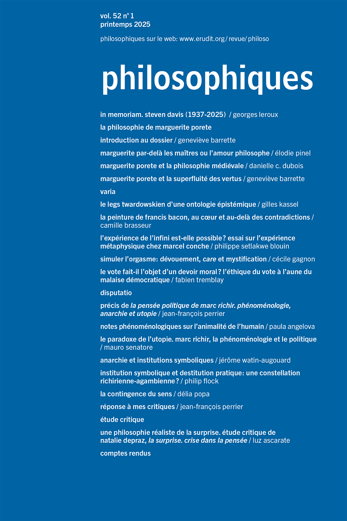 Volume 52, Number 1, Spring 2025 La philosophie de Marguerite Porete Guest-edited by Geneviève Barrette