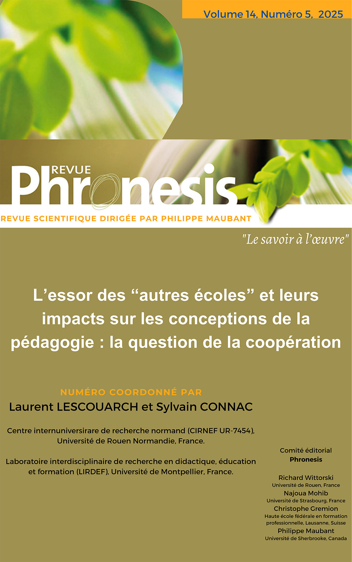 Managing editor(s): Philippe Maubant (Directeur/Éditeur) / Editor(s): Roxane Deraynald (Responsable éditoriale), Philippe Maubant (Rédacteur en chef), Richard Wittorski (Rédacteur en chef adjoint), Najoua Mohib (Membre du Comité éditorial), Christophe Gremion (Membre du Comité éditorial)