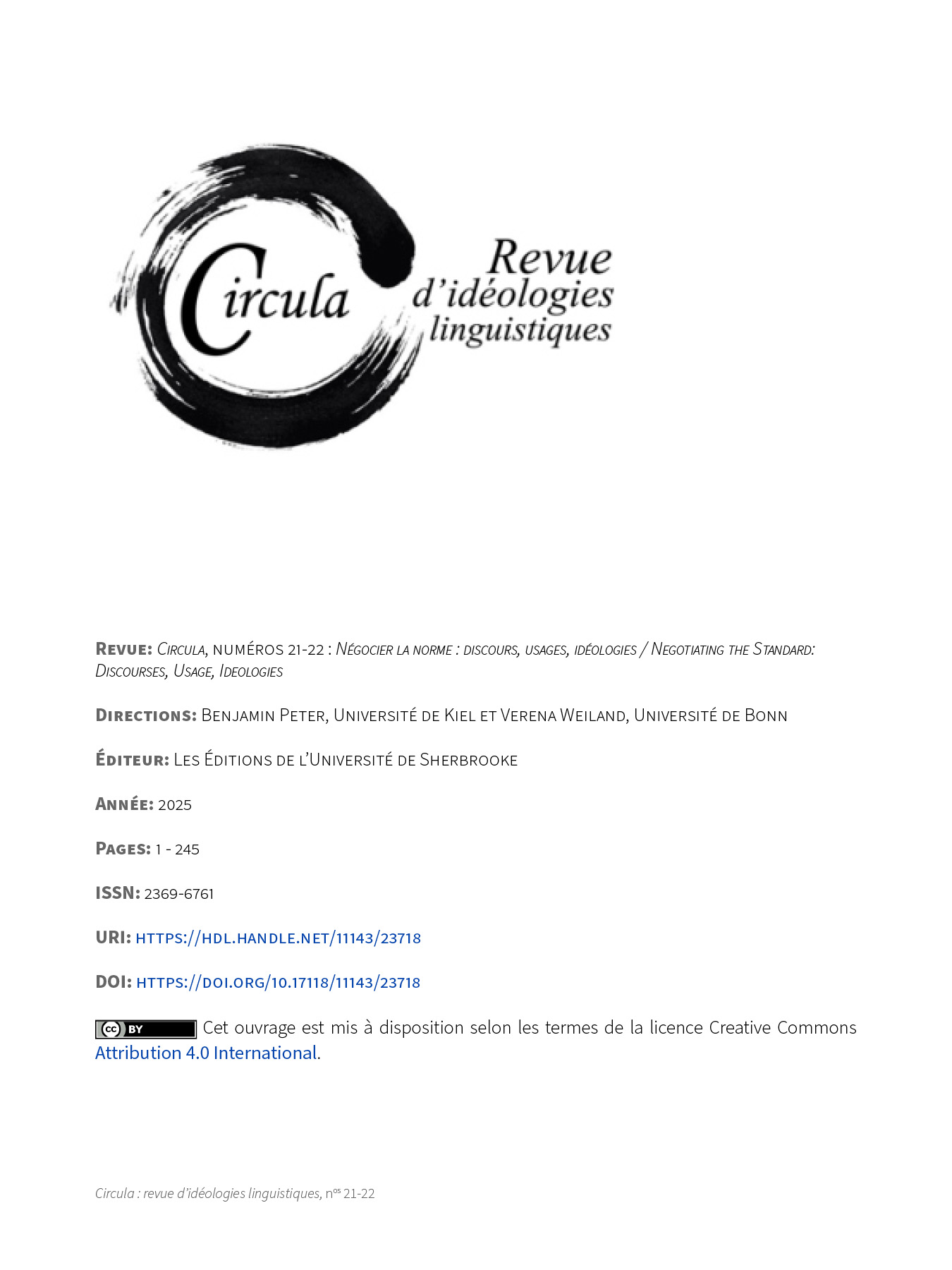 Fondée en 2014, la revue électronique Circula : revue d’idéologies linguistiques publie des travaux consacrés à la conceptualisation, la construction et la circulation d’idéologies sur la langue, plus particulièrement dans les communautés de langue romane.
