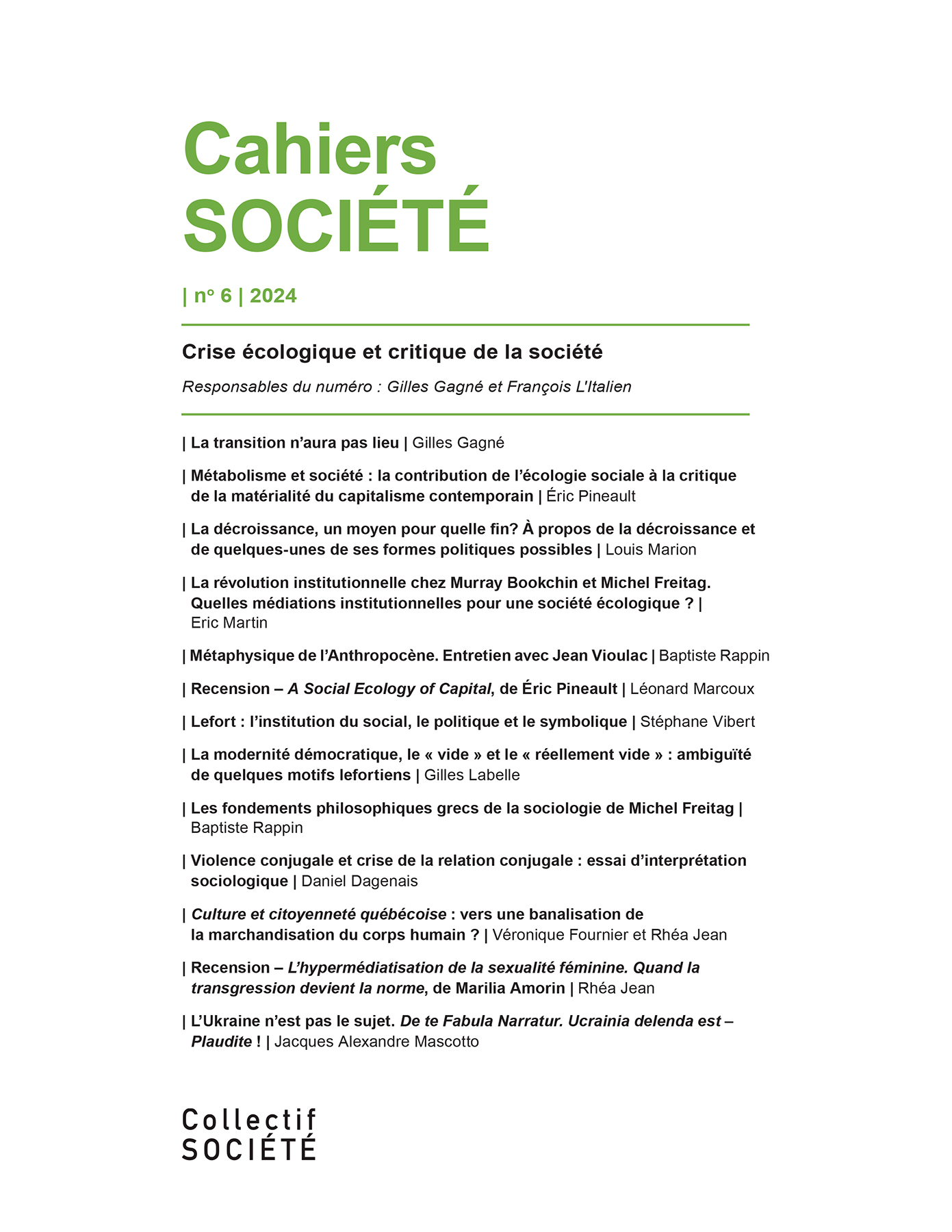 Il est aussi possible de se procurer des numéros papier de la Revue Société (https://revuesociete.uqam.ca/) et des Cahiers du GIÉP (verbatims des séminaires du Collectif Société).