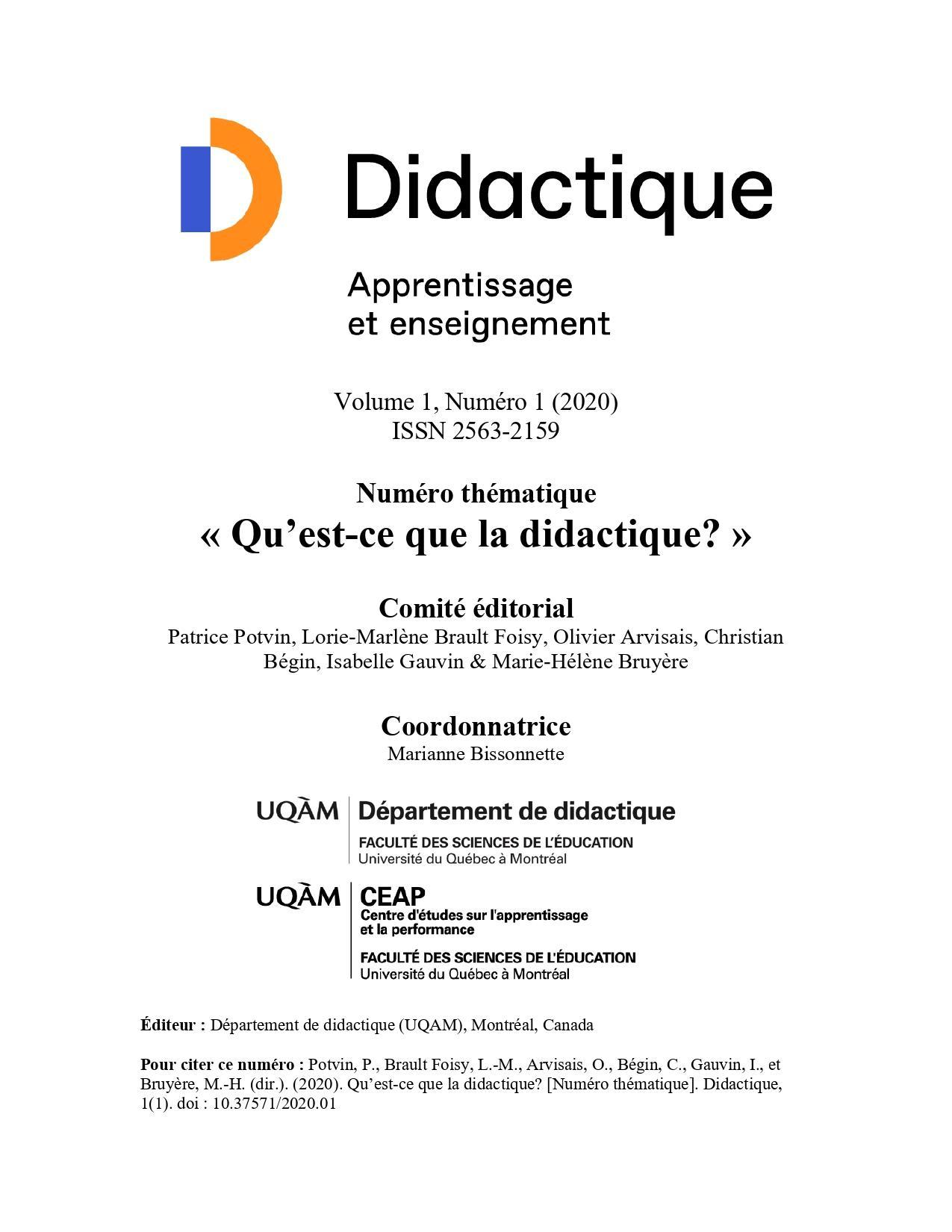 Volume 1, numéro 1, 2020 Qu’est-ce que la didactique ?