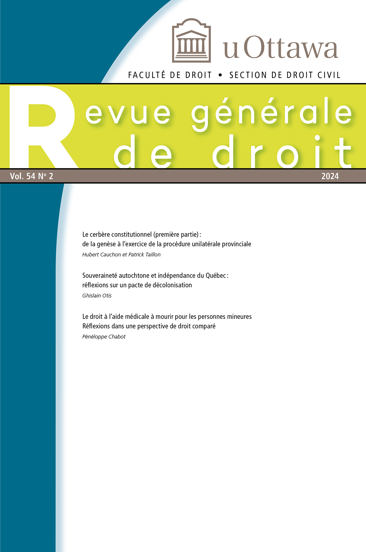This article does not take a position on the advisability of Quebec’s political independence, nor does it assert that the end of the Canadian constitutional order would guarantee the decolonization of the relationship between the State and Indigenous peoples. It merely seeks to identify ways in which independence could be leveraged to decisively move beyond the colonial paradigm. The author aims to identify and outline the main components of a possible decolonization pact between the Indigenous peoples of Quebec and the Québécois people, a pact that would form the foundation of the new independent State. The primary condition for decolonization will be the unequivocal rejection of the Canadian legal framework inherited from the colonial enterprise. To break free from colonial continuity, independence must be pursued not “from above” between state entities, but “from below” between peoples sharing a territory and a history. The founding pact of an independent Quebec would thus involve the restoration of original sovereignties and Indigenous territories within an egalitarian relationship with the Québécois people and State. However, this must take into account the enduring and irreversible presence of a non-Indigenous majority and a State that has existed for centuries. From a juspluralist perspective, the author proposes legal mechanisms and institutional arrangements that could integrate Indigenous sovereignty into the constitution of an independent Quebec without supplanting or absorbing the non-state Indigenous legal order. To end the colonial capture of Indigenous peoples by the State, the article also emphasizes the need to frame the relationship between Indigenous peoples and Quebec within the international sphere.