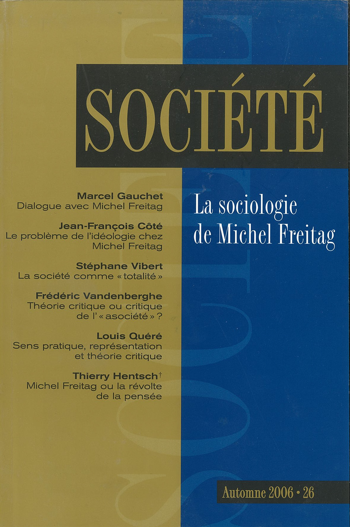 Numéro 26, automne 2006 La sociologie de Michel Freitag