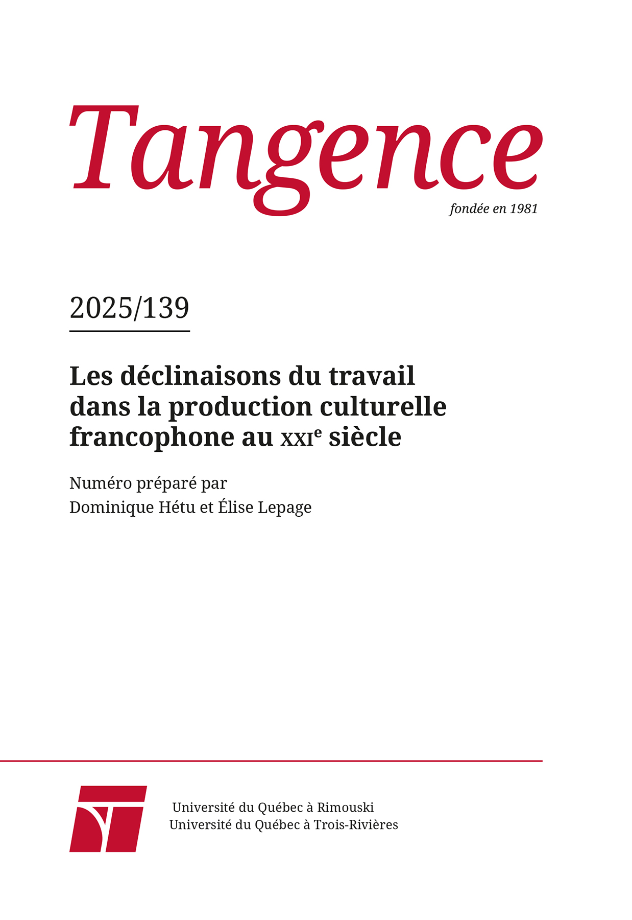 Numéro 139, 2025 Les déclinaisons du travail dans la production culturelle francophone au xxie siècle Sous la direction de Dominique Hétu et Élise Lepage