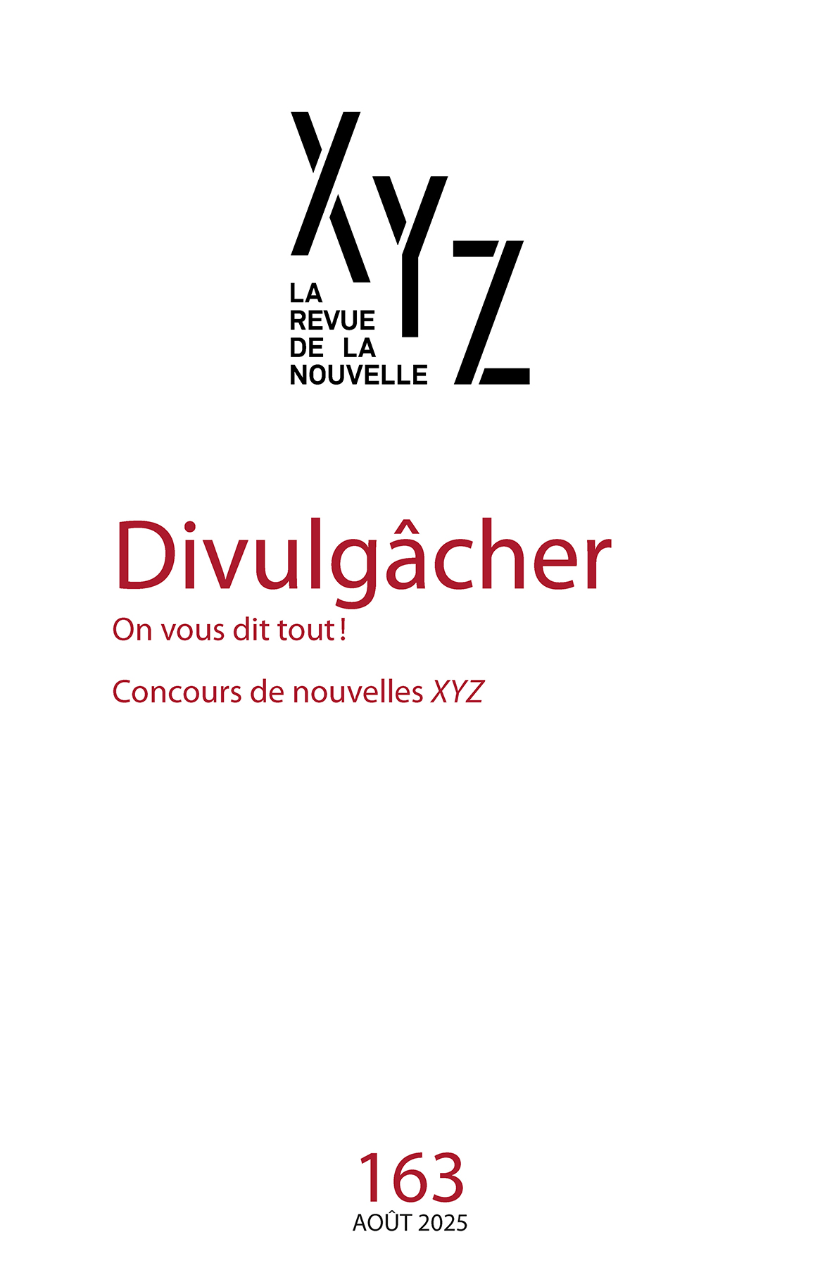Publiée depuis 1985, XYZ contribue à la diffusion de la nouvelle littéraire au Québec. Bref… Pour faire court… Tout dire en quelques phrases… S’en tenir à l’essentiel… Exprimer en quelques pages… L’art du nouvellier relève d’une habileté particulière. Inventer et élucider un mystère, résumer une vie, raconter un drame, philosopher avec humour… en quelques traits. XYZ élague encore, ne publie que la quintessence de ces courtes narrations qui occupent si pleinement quelques heures de loisir.